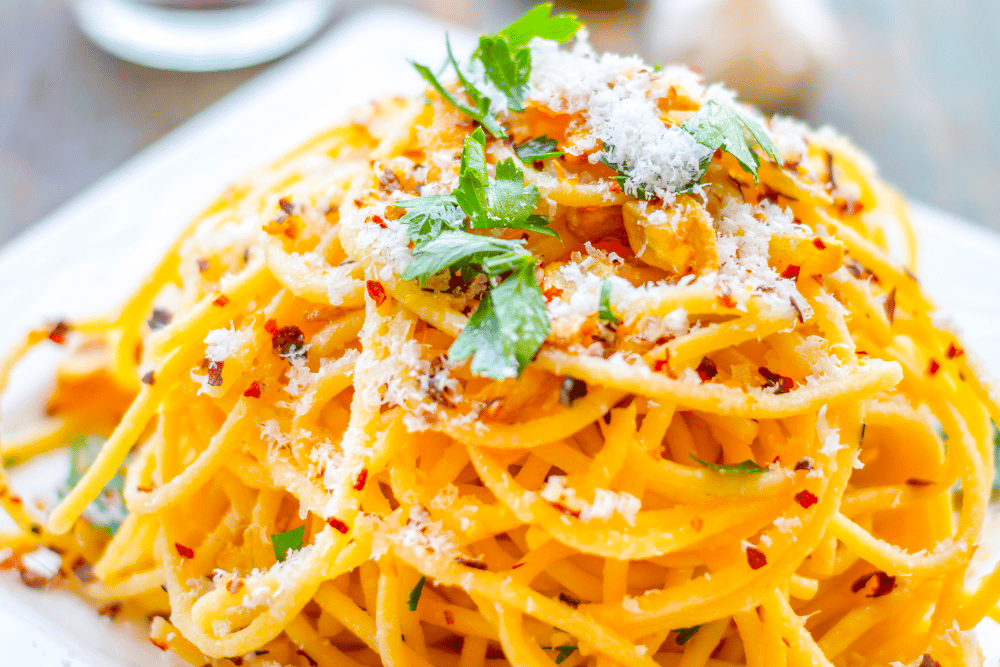 - Transfer the Spaghetti Aglio e Olio to serving plates.